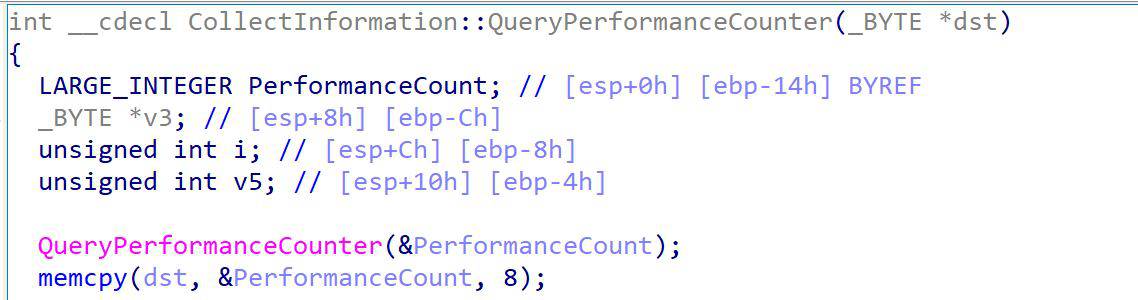 Using the QueryPerformanceCounter API, it collects the amount of time since the system was last booted. This value will be used to compute the 2-byte XOR encryption key to encrypt communications between the implant and the C2 server, a detailed analysis of the encryption implementation will follow.