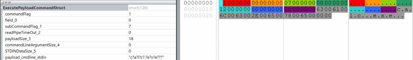 Some of the sub-commands use pipes to redirect the standard input/output of the child process, which enables the attacker to execute payloads and retrieve its output, for example, PowerShell or Mimikatz, etc…