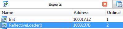 The DLLs loaded in memory also conveniently export a self-describing function called ReflectiveLoader().