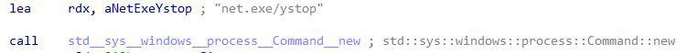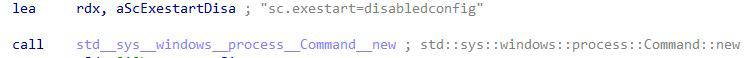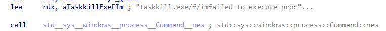 LUNA uses service and process termination to de-conflict any files locked by other programs to successfully encrypt them along with disabling security products that may prevent ransomware execution. It does this by leveraging a built-in Rust process builder ( std::sys::windows::process::Command::new ) to call three new processes with their own pre-defined command-line arguments.