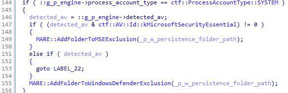 If QBOT is running under SYSTEM account, it will add its persistence folder to the Windows Defender exclusion path in the registry. It will also do this for the legacy Microsoft Security Essential (MSE) exclusion path if detected.