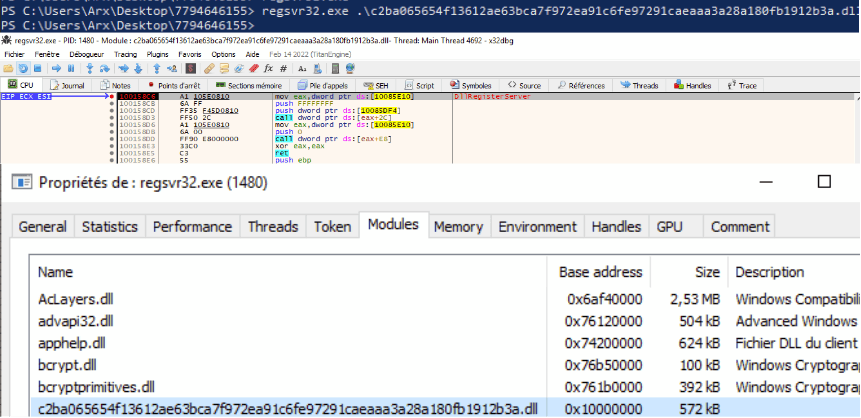 The sample is executed with the regsvr32.exe binary, which in turn will call QBOT’s DllRegisterServer export: