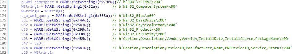 Part of QBOT communication with its command and control is sending information about the computer. Information are gathered through a set Windows API calls, shell commands and Windows Management Instrumentation (WMI) commands:
